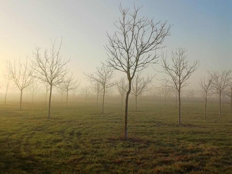Einige der früh austreibenden Walnuss-Sorten sind empfindlich gegenüber einem Pilzbefall mit Marssonina juglandis (Anthraknose). Der Pilz überdauert den Winter auf den Blättern und entlässt seine Sporen bei steigenden Frühjahrstemperaturen in Verbindung mit einer feuchten Witterung. Die Infizierung der Blätter erfolgt im BBCH-Stadium 10-11, also nach dem Aufbrechen der Knospen und vor der Entfaltung der Fiederblätter. In den meisten Fällen ist eine spätere Behandlung mit einem Fungizid insbesondere größerer Bäume schwierig; für den Bioanbau zudem kein geeignetes Mittel zugelassen. Umso wichtiger sind pflanzenhygienische Maßnahmen: Bei Neupflanzungen kann in den ersten drei Jahren das Laub noch eingesammelt werden. Bei älteren Anlagen ist das erstmalige Mulchen der Blätter im Winter und ein erneutes Mulchen kurz vor dem Austrieb jeweils bei Frost eine sinnvolle Maßnahme, um den Pilzdruck in der Walnussplantage zu minimieren. Für Betriebe, die ihre Walnusswiesen nicht mulchen sondern mähen, wird in Südwestfrankreich empfohlen, das Wiesenmanagement so zu gestalten, dass ein möglichst hoher Grasbewuchs in der Zeit der Infektionsgefahr mit Marssonina juglandis vorhanden ist. Ein höheres Gras erschwert die Verbreitung der Sporen aus der vom Gras überwachsenen Laubschicht. (Quelle: DRAAF Nouvelle-Aquitaine, 2026). Betriebe, die ihre Baumschulware bei uns gekauft haben, können sich in Fragen des Pflanzenschutzes in Walnussplantagen jederzeit an uns wenden.
